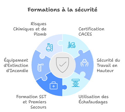 Tous nos collaborateurs intervenant sur site sont dotés d’équipements et de matériels de protection individuelle adaptés à leurs missions : casques, gants, chaussures de sécurité, harnais, bouchons d’oreilles, masques, etc. Ces EPI sont rigoureusement contrôlés et renouvelés pour garantir une sécurité optimale au quotidien.